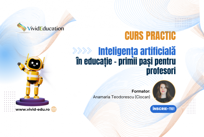 ormării profesionale a cadrelor didactice, își propune să sprijine profesorii să folosească inteligența artificială într-un mod practic, clar și adaptat realității din unitățile școlare.